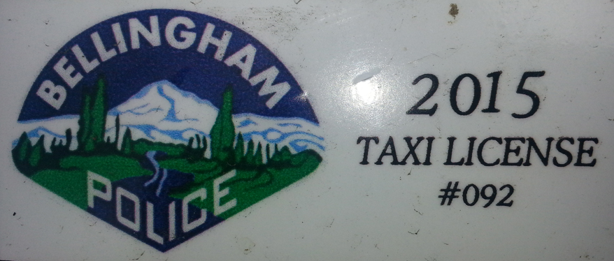 All legal cabs are inspected and licensed annually by the Bellingham Police Department. Look for this sticker!